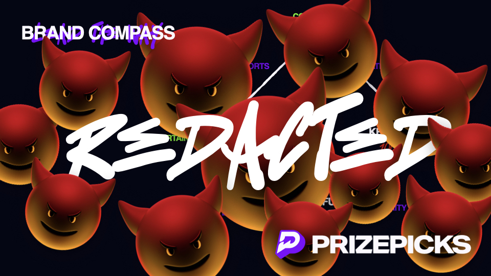 PrizePicks is a leading online daily fantasy betting platform. They had a logo, fonts, and colors, but to grow as a company, they needed a brand. I led an on-site workshop at their Atlanta headquarters to develop a brand architecture alongside their passionate team. I can't share the top-secret documents, but it was so successful that it led to a retainer agreement for my agency and shaped how the ever-growing brand (try to escape them!) shows up to this day.